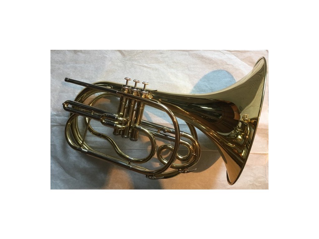 Pochodový B lesní roh v lakovaném provedení (na obrázku vyobrazené postříbřené provedení).